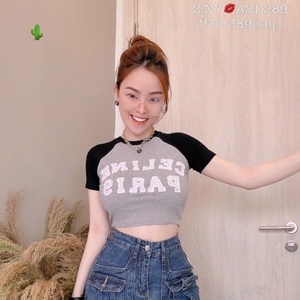 ÁO THUN NỮ CROPTOP CỔ TRÒN TAY NGẮN CELINE PARIS - AUSA HOUSE